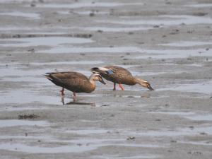 やはりあまり鳥はいませんでしたが、カルガモを干潟の上にみつけました。