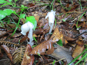 【ギンリョウソウ】別名ユウレイタケ。葉緑素が無いため光合成ができません。菌類に寄生しそこから栄養を取り入れて生きているのだとか。