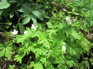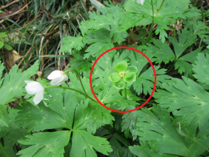 同じニリンソウですが変わった花が咲いています。先祖返りと言って、祖先の持っていた形質が突然現れることがあるのだそう。