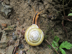 【ハクサンマイマイ】雨の日にちょこんと姿を現します。絶滅危惧種に指定されているので、こんなにすぐにお目にかかれるとは思ってもみませんでした。