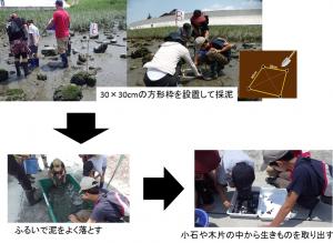 今回の調査プログラムの内容は、「干潟の泥の中にどんな