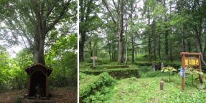 こちらはハルニレやブナの巨木、花も多く、色濃く残る自然の中にも、笹ヶ峰ダムや昔の製材所跡、炭焼き窯跡、神社等、昔から人とのつながり・歴史のあるエリアです。昔の人たちが生活していた跡もしっかり残っており、思いを馳せながら歩きました。