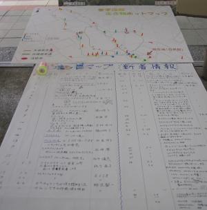 四季折々の湿原の花や生き物たちの目撃情報を、菅平湿原の地図に書き入れていく