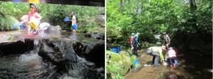 一時間ほど遊歩道を歩いた後は、近くの川で水生生物の観察へ。