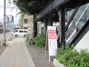 <信濃大町駅側から撮影。信号のある交差点の角に会場の建物があります。>