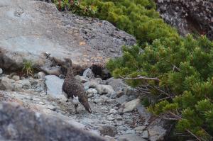 東鎌尾根の途中で雷鳥がいました!!雌でしょうか。。特別天然記念物のとても貴重な鳥です。てくてく登山道を歩いて行くので、しばらく一緒について行きました。