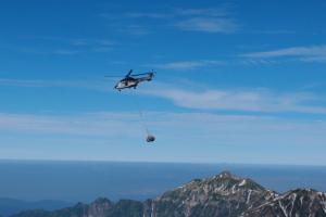 歩いている際にヘリコプターが上空を飛ぶのを何度も目にします。このあたりの山小屋を回っています。物資の運搬、トイレの屎尿の処理など、ヘリは山では欠かせない存在となっています。