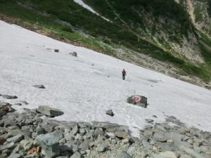 天狗平から大曲までは雪渓が残っており、足下に気をつけながらゆっくり下っていきます。大曲からはもと来た槍沢を上高地方面へ下ります。上高地まではそれなりの距離がありますので、最後まで気を抜かずに進んで行くことが大切です。