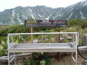 さて、現在立山室堂のエンマ台と雷鳥荘の近くには、仮設水場が設置されています。