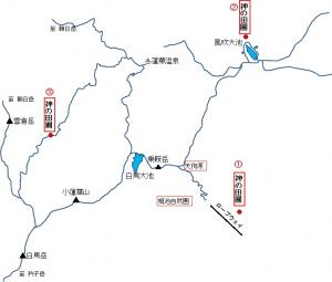下の写真は、同じ小谷村ですが、風吹大池の近くにある「神の田圃」(下の図の②)です。