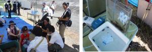 参加者らは用意されていた魚類やカメ、エビとふれあい、