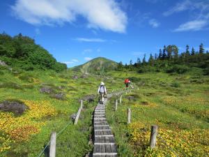 花は7月頃~チングルマ、ハクサンコザクラ、ワタスゲ、モウセンゴケ、イワイチョウ、8月頃~イワショウブ、ヒメウメバチソウ、今の時期ですとオヤマリンドウが見事に咲き誇り、開けた平坦な地形のため、汗もかかずに快適に風景を堪能しながら歩けます。