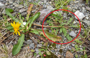 室堂で除去するのはスズメノカタビラとアカミタンポポの二種。