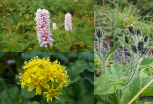 【左上】イブキトラノオ【左下】ミヤマアキノキリンソウ【右】ミヤマコウゾリナ