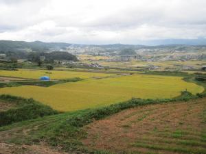 こちらは飯綱町の稲畑。曇っていますが一面に輝く金色の稲穂が広がる風景が美しいです。