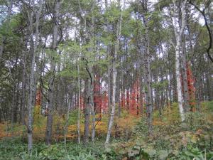 木の幹を這う真っ赤なツタウルシがこれまた見事!