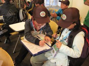 その後は、今日の活動で発見したことや感じたことを班ごとにまとめ、黒レンジャーに報告しました。