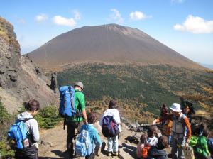 また、火山である浅間山の外輪山の一つである“黒斑山”に入山することから、「噴火警戒レベル」についてみんなで確認。火山活動に合わせた入山規制が行われていることを学びました。現在は、噴火警戒レベル1です。