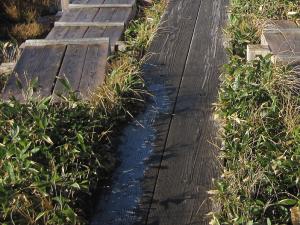 さて、この歩道では平成20年度から新潟県への施行委任で、木道、階段等の施設整備を行っています。今回の目的はそれら施設の状況の確認でした。