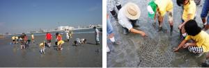 貝など干潟の生きもの探しに夢中になっている様子でした。