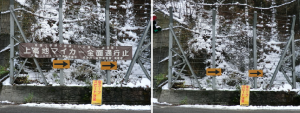 マイカー規制の横断幕(釜トンネル入口)撤去