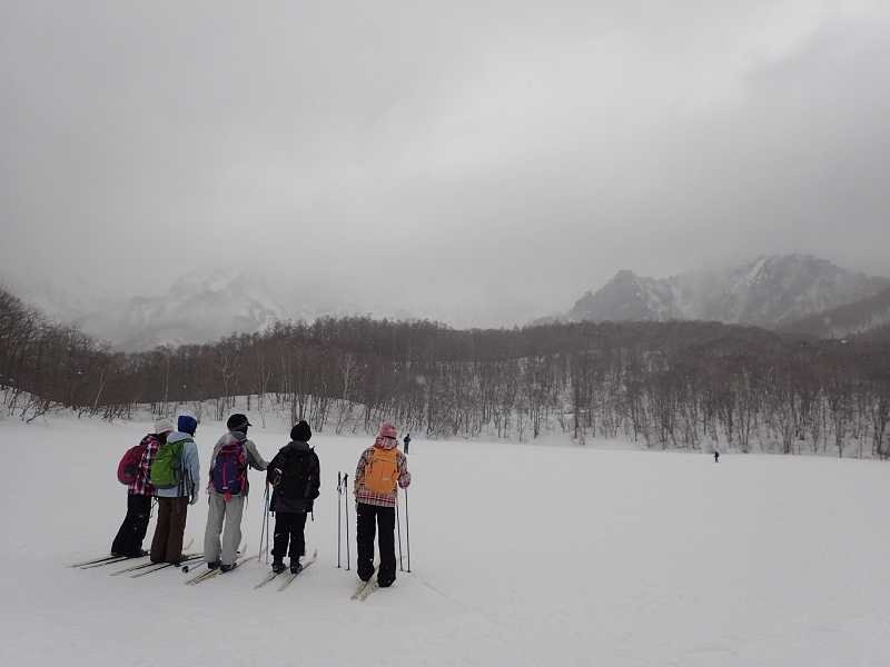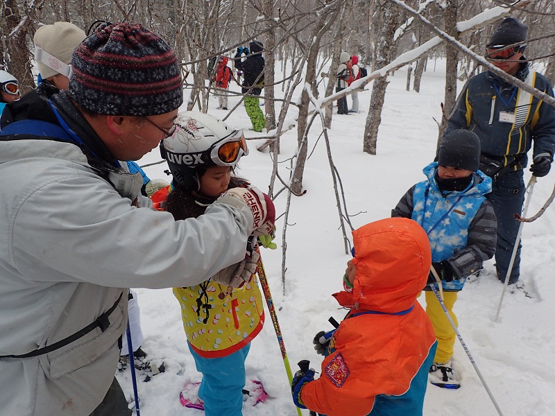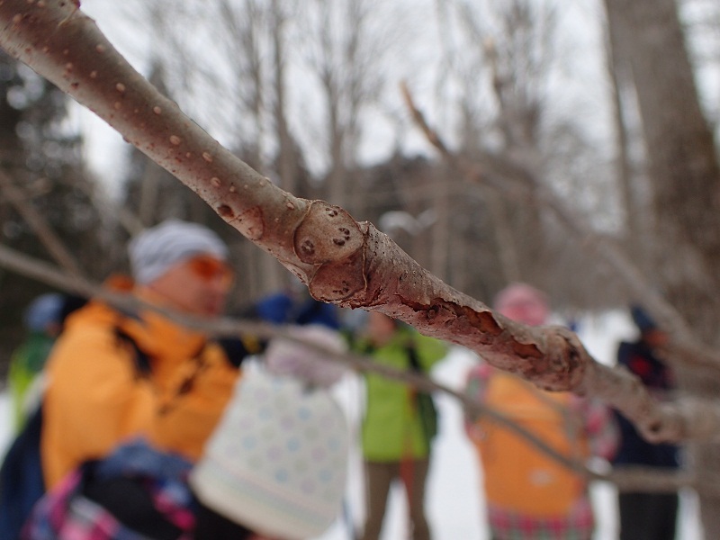 雪上観察会では、スノーシューやクロスカントリースキーを履いて