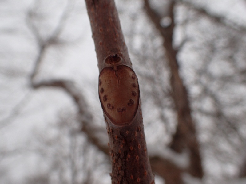 枝の先に大きなトチノキの芽、手袋を外して触ってみるとベタベタする!