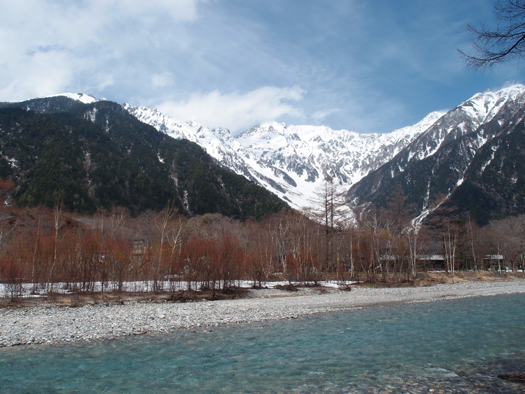 ですが、サクラが咲き、春真っ盛りの下界の街とは違い、上高地はまだまだ冬のようです。
