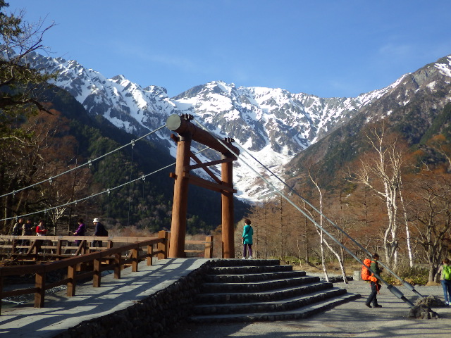 今年の開山(17日)直後は雨が続き、春だ!上高地だ!という気持ちがシュンとしていましたが、先週からようやく春らしい天気となり、本日晴天に恵まれ、盛大に幕開けとなりました。