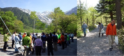そんな中、皆様に気持ち良く楽しんでいただくため、地元や関係者で構成された「上高地を美しくする会」の清掃活動が開始しました。今年で52年となる活動ですが、今日は初期からのメンバーにお話しを聞く機会があり、長い歴史を感じ続けていくことと、育てていくことの重要さを感じました。(活動の紹介は長くなりそうなので、またの機会に。)