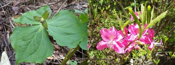 <左:エンレイソウ、右:ムラサキヤシオツツジ>