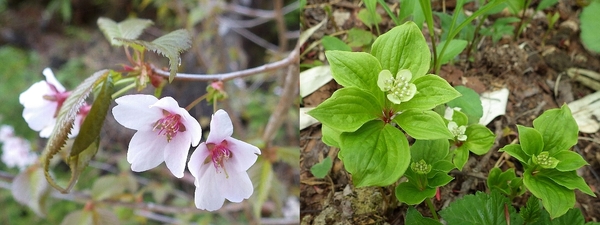 <左:タカネザクラ、右:ゴゼンタチバナ>