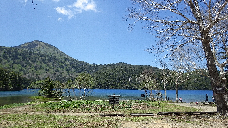 また、池の向こうに志賀山を望む景色も見どころです。大沼池はこの山の溶岩流により堰き止められてできた池です。水の色は、この写真では少し緑がかって見えます。