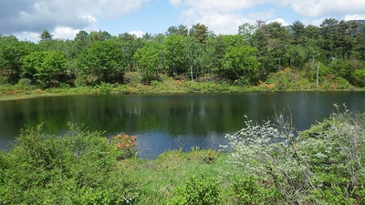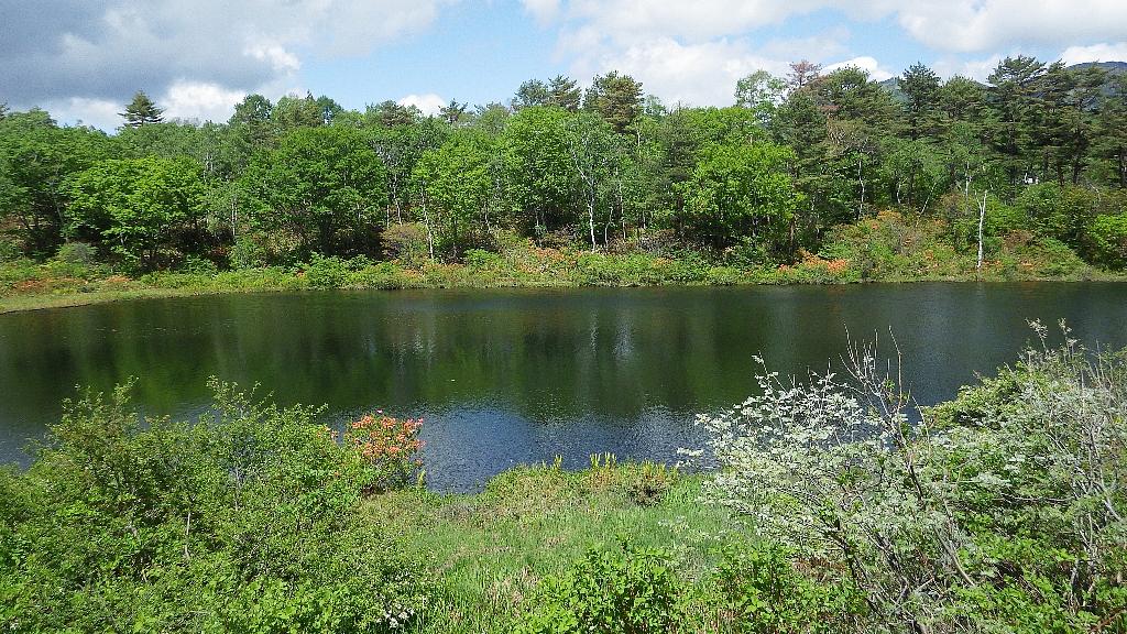 また、同じように駐車場に近くて、今の時期に花が見頃になるのは一沼(いちぬま)です。ほとりにレンゲツツジが多く咲きます。下の写真では咲き始めなので分かりにくいのですが、満開になるともっと目立ちます。