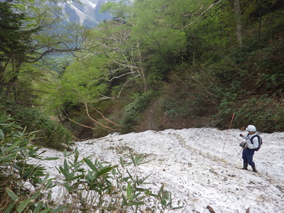 残雪は徳本峠小屋の明神側の下部分を以外は残っておらず、歩きやすい状態でした。