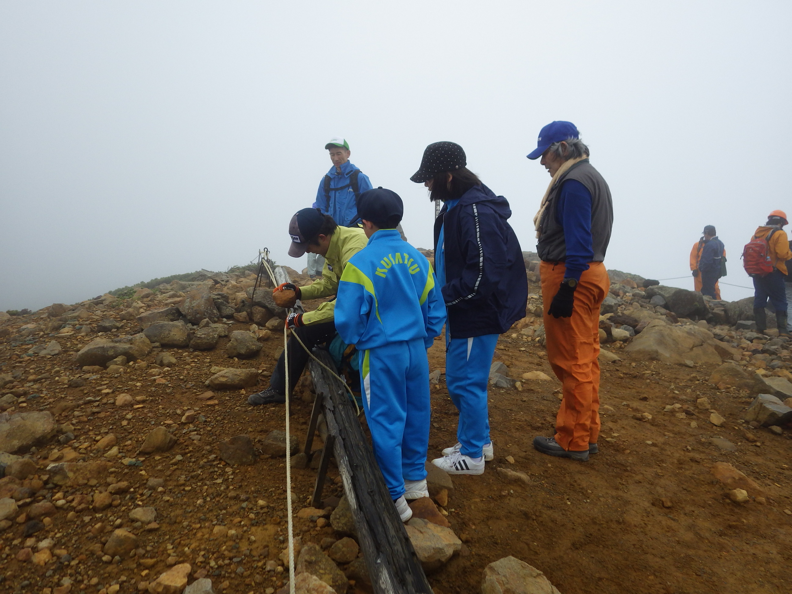 さて、そんな梅雨空広がる中でしたが、地元の草津中学校の1年生と一緒に本白根山のロープ張りの作業を行ってきました。