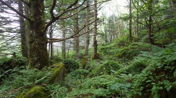五味池破風高原には、リンドウ群生地やレンゲツツジ群落の他にも、見どころがあり、その一つがウラジロモミの林です。この林の奥には幹の周囲が約5mのモミ(西五味池のモミの木:市指定天然記念物)があるそうです。