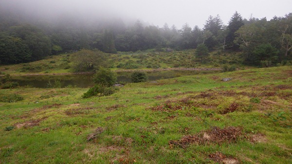 下の写真は大池で、池の奥にはレンゲツツジの群落があります。花の咲く時期を想像すると、水面にも花の色が映ってきれいだろうなと思います。