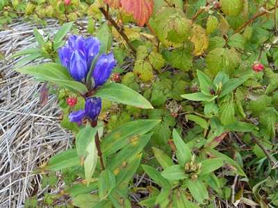 <早くも咲いているリンドウ(エゾリンドウ)がありました。多くのものは右側の株のように、まだつぼみです。>