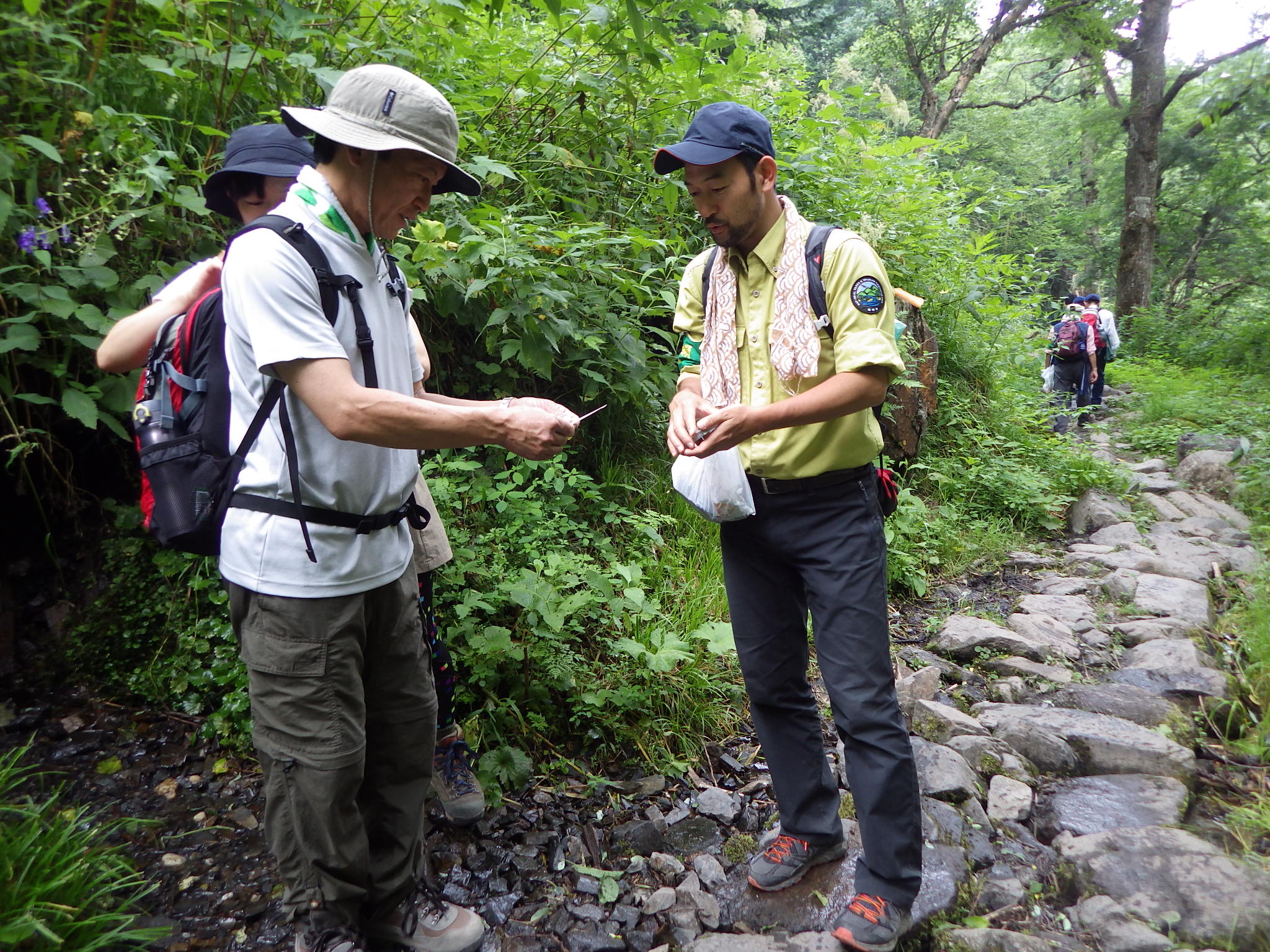 この行事は、高山植物等保護対策協議会中信地区協議会の行事で、貴重な動植物の保護のため、登山者に啓発をおこなうものです。