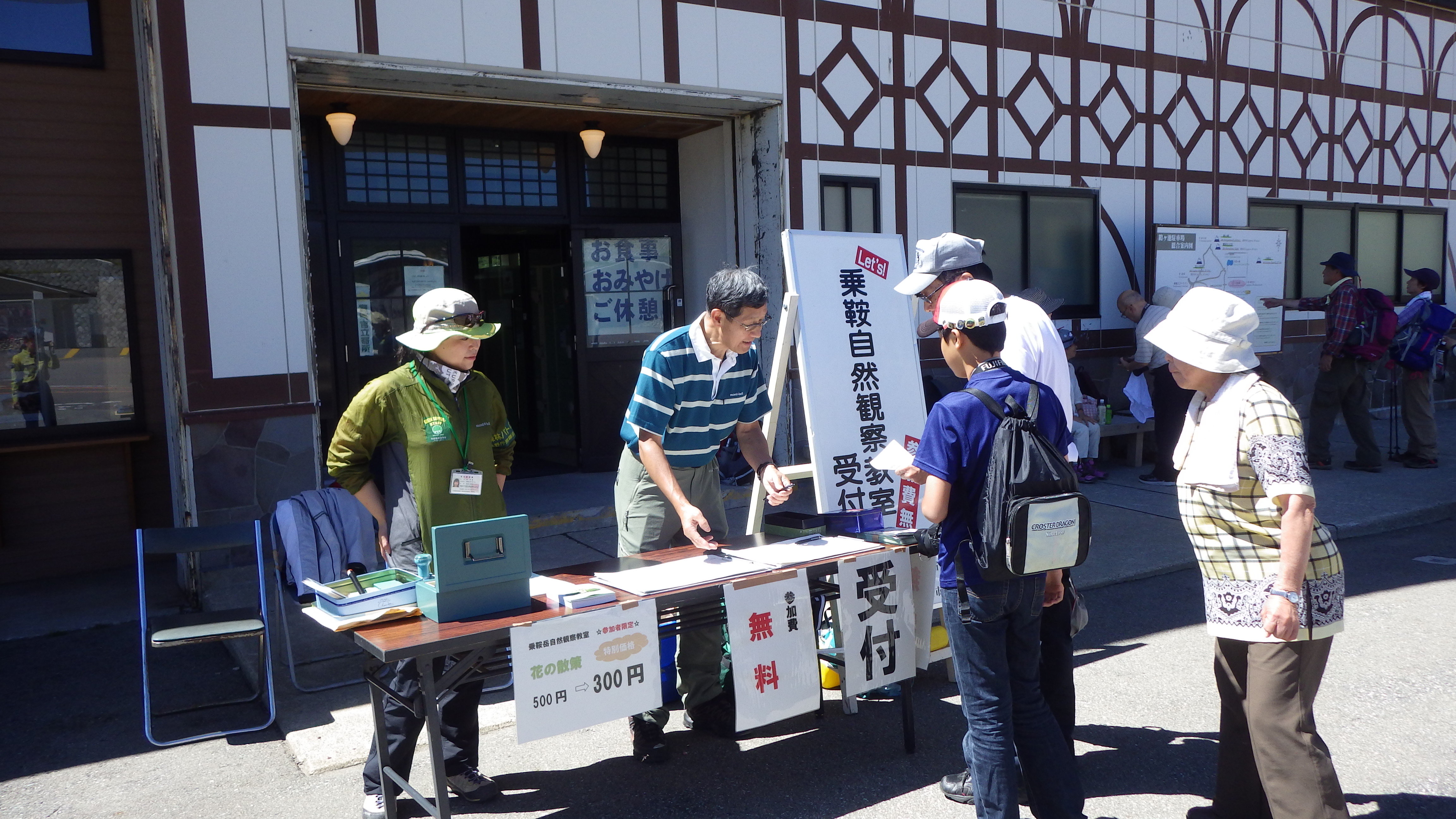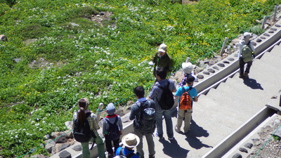 毎年、夏休みに畳平のお花畑の盛りと合わせて、無料の観察会(お花畑の散策・乗鞍の紹介など)を行っています。今年は7月23・24・30・31の4日間でした。