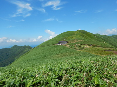 蓬峠は比較的手軽に高山の草原景観を楽しめるところです。生まれ変わった蓬ヒュッテを利用してこの景色を味わいに来てください。