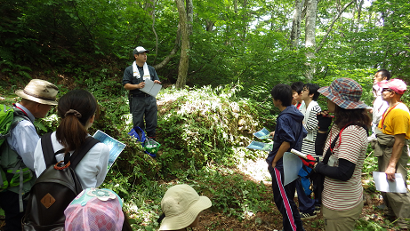 今回の観察会は薪の利活用への関心と、自然と人との関わり合いについて知ってもらうことを目的に開催しました。1度人が手を入れた人工林や二次林は、手入れをしていかないと細い木々ばかりが増え暗くなり、動物も植物もいなくなり荒廃します。そうした手入れ不足林を整備し、薪として利用することで、森も元気になり、人間も助かります。また、国立公園=優れた自然はもちろんですが、白山国立公園内には人々の生活の跡がたくさん残っています。自然と共生する独自生活様式や白山の風土が形成した歴史や文化も白山国立公園の魅力なのです。