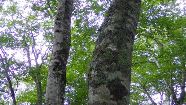 渓谷の林は、幹の太いブナやミズナラの林です。紅葉は10月中旬頃です。