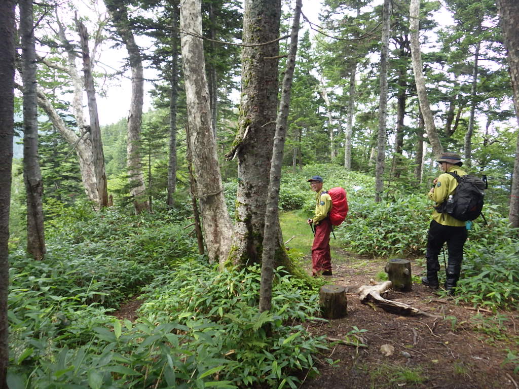 ナラズ山直後の様子。ササ藪で道が最も分かりにくかったところです。木村レンジャーの地形図の読図と志賀高原自然保護官事務所の則武アクティブレンジャーのGPSの活用とでこの難局を乗り切ることができました。