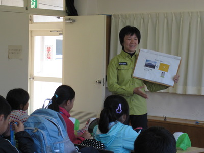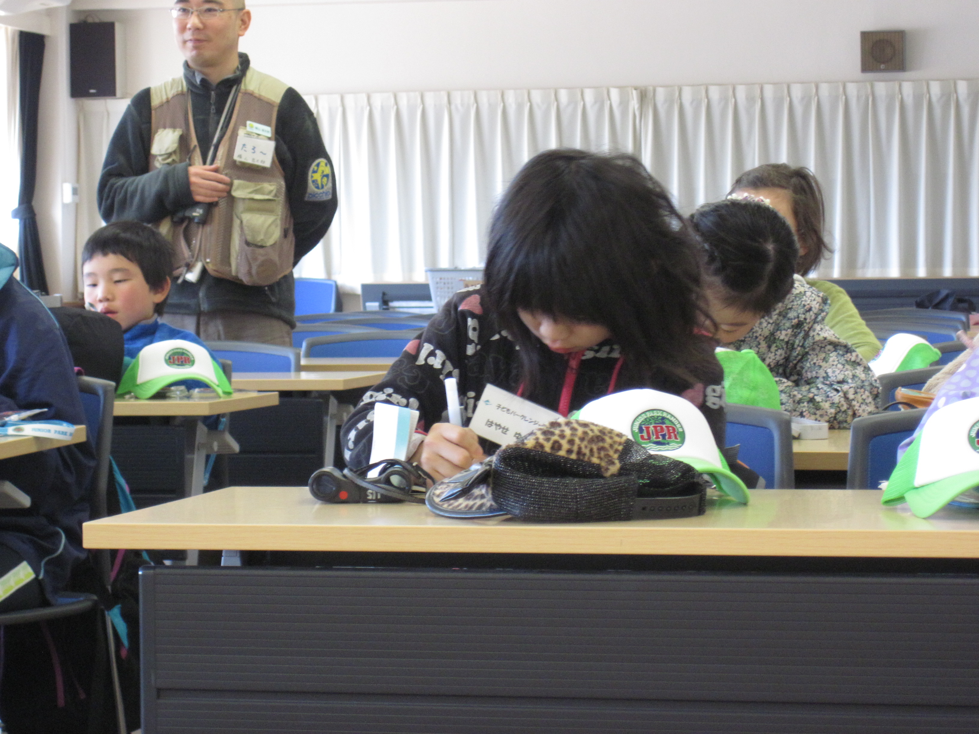 その後、やまレンジャーとさわレンジャーから、国立公園と鳥獣保護区におけるレンジャーのお仕事や取り組みについて説明が行われました。配布されたJPR手帳にみんなシッカリとメモをしていました。