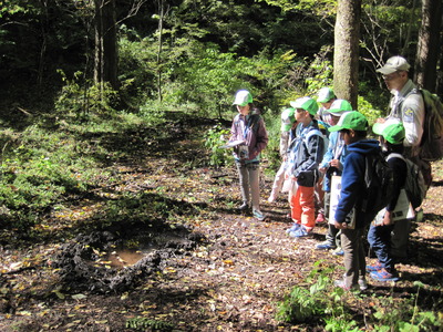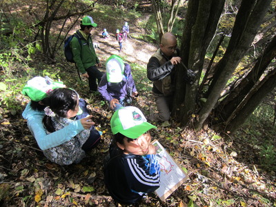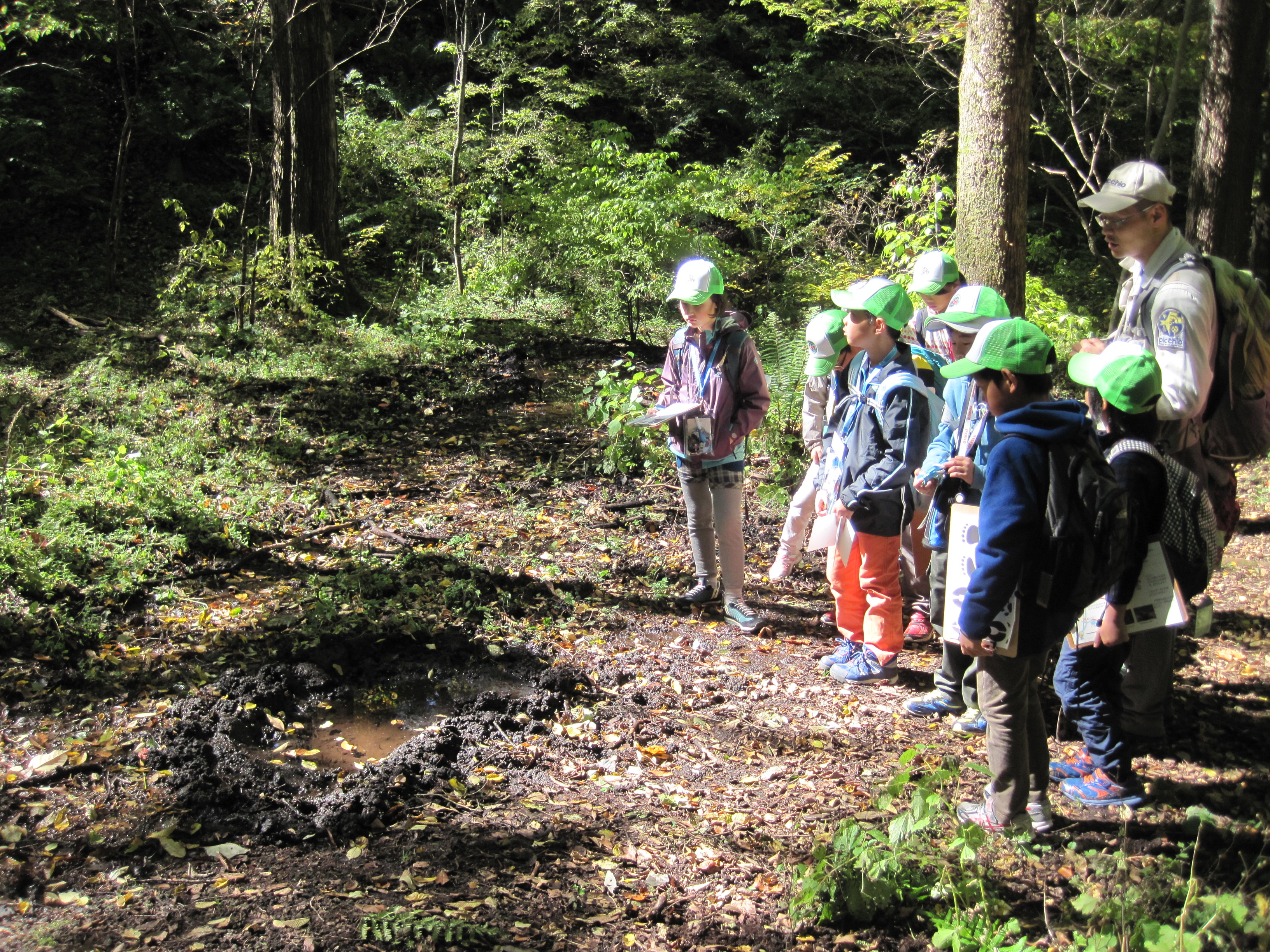 また、ツキノワグマの糞やツメ跡、獣道、リスの食跡など・・・多くの動物の痕跡を確認することが出来ました。この空間に様々な生きものが生活している事が分かりました。