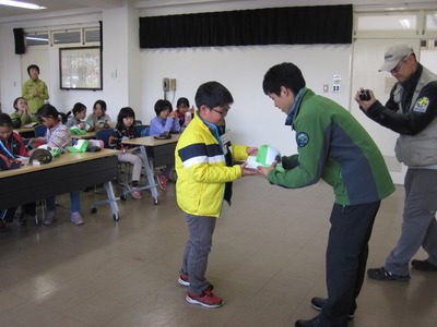 まずは、任命式。やまレンジャーから任命証が一人一人に手渡されました。