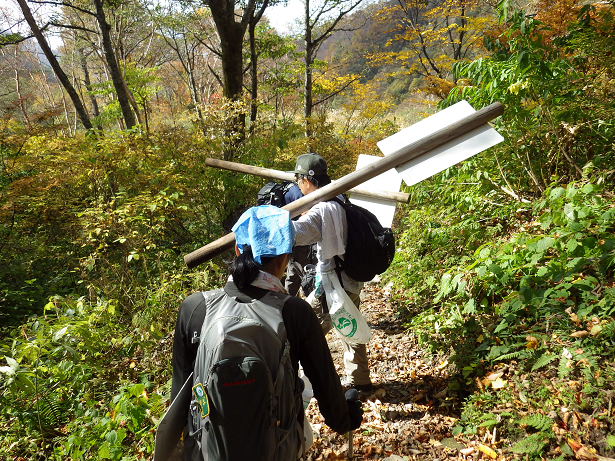 毎年恒例の作業です。冬に備え一方通行の看板を取り外しました。パークボランティアの皆さん、ありがとうございます。