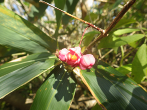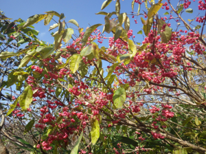 可愛い桃色の部分は花では無く果実なんです。熟すとパカッと開いて種子が顔を出します。